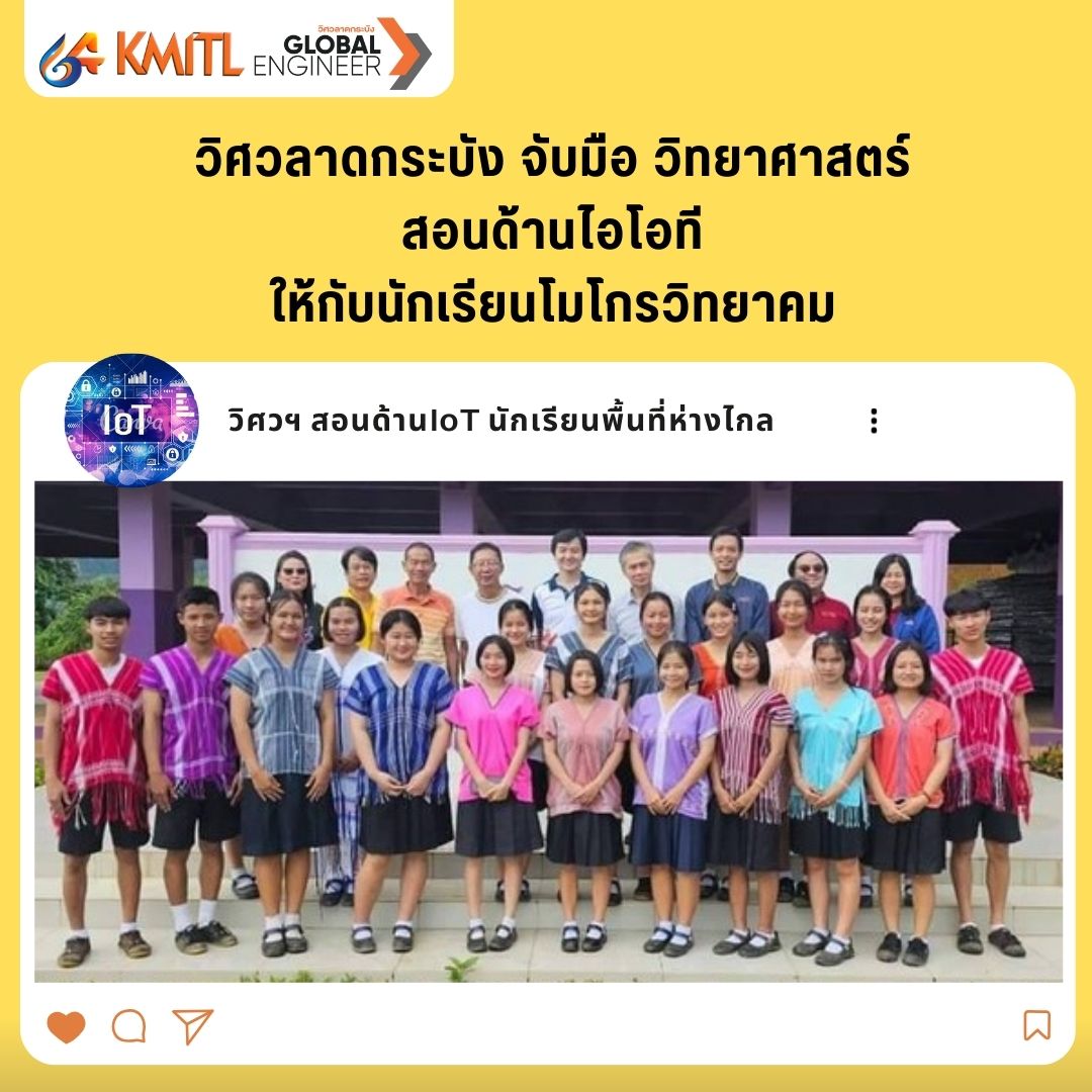 คณะวิศวกรรมศาสตร์ สจล. ร่วมมือกับ คณะวิทยาศาสตร์ สจล. จัดการเรียนการสอนด้าน IoT แก่น้องนักเรียน คุณครูโรงเรียนโมโกรวิทยาคม ซึ่งเป็นไปตามข้อตกลงความร่วมมือทางวิชาการ ในการจัดตั้ง “โครงการศูนย์นวัตกร” เพื่อพัฒนาศักยภาพการเรียนรู้ ณ โรงเรียนโมโกรวิทยาคม อำเภออุ้มผาง จังหวัดตาก
