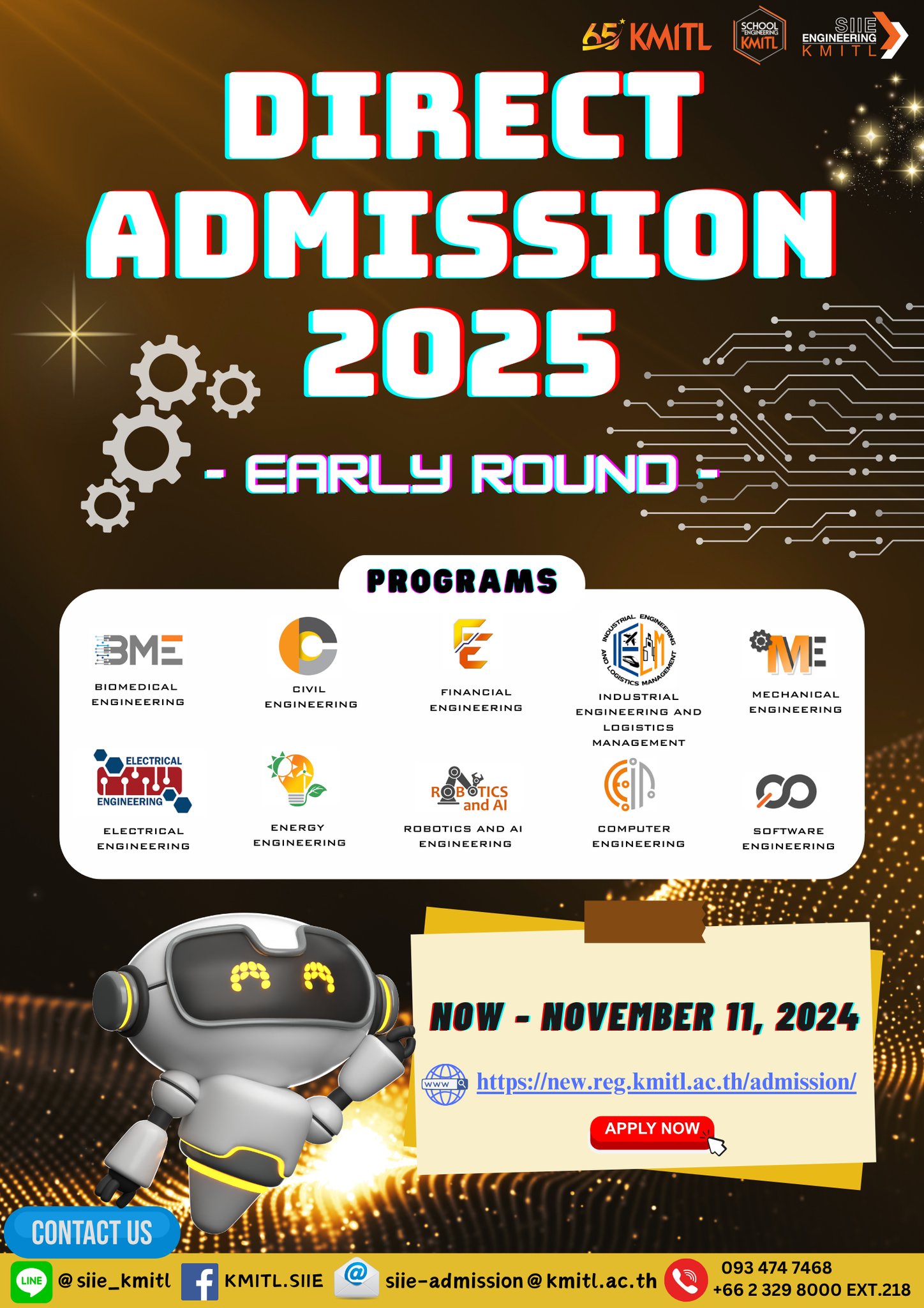 Direct Admission 1-1 (Early Round) ประจําปีการศึกษา 2025 เปิดแล้ว