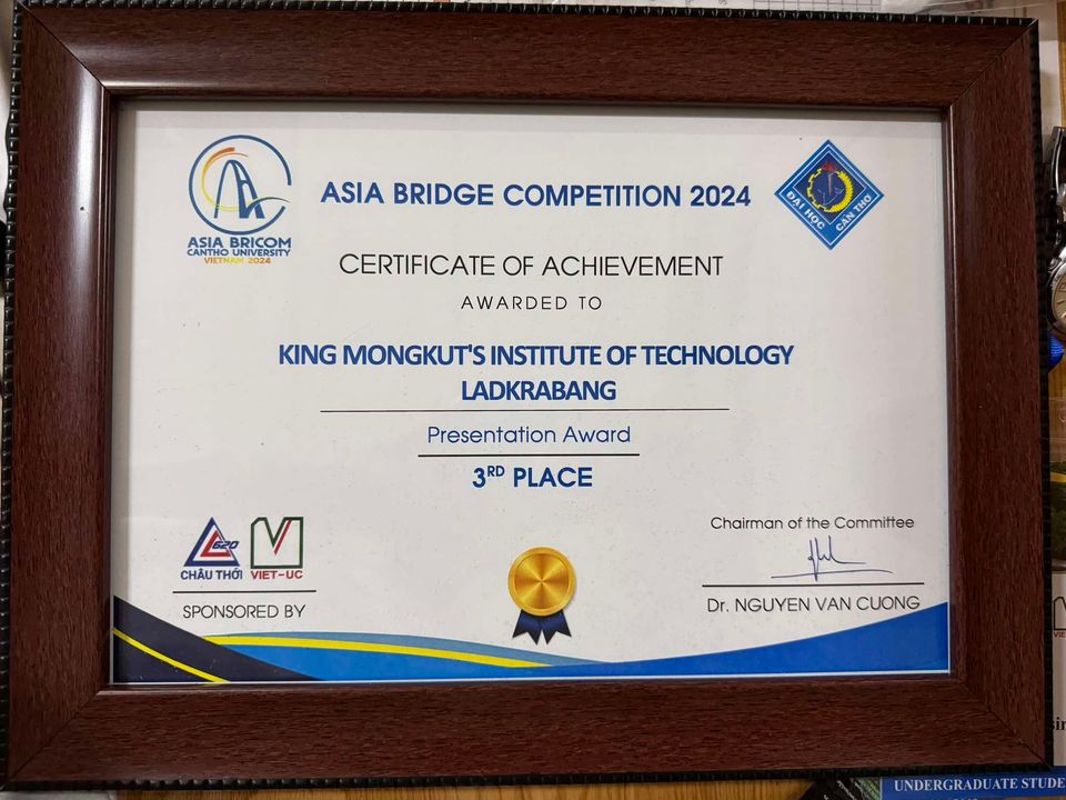 คณะวิศวกรรมศาสตร์ #สจล. ขอแสดงความยินดีกับนักศึกษาชั้นปีที่ 4 ภาควิชาวิศวกรรมโยธา ในโอกาสคว้ารางวัล 3rd Place