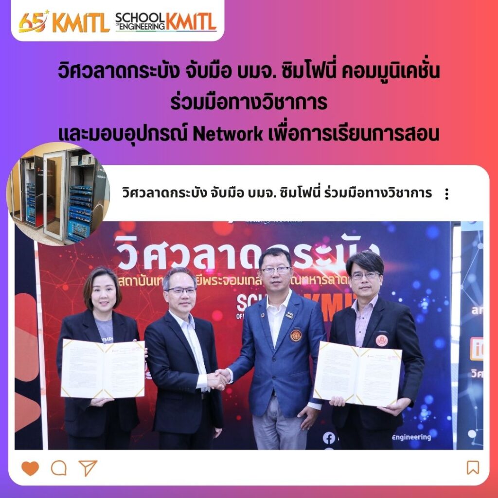 #วิศวลาดกระบัง จับมือ บมจ.ซิมโฟนี่ คอมมูนิเคชั่น ร่วมมือทางวิชาการ และมอบอุปกรณ์ Network เพื่อการเรียนการสอน . เมื่อวันที่ 26พฤศจิกายน 2567 รศ.ดร.สมยศ เกียรติวนิชวิไล คณบดี พร้อมด้วย นายสุพรชัย โชติพุทธิกุล รองกรรมการผู้จัดการ บมจ.ซิมโฟนี่ คอมมูนิเคชั่น ร่วมลงนามความร่วมมือทางวิชาการ และมอบอุปกรณ์ Network เพื่อการเรียนการสอน เป็นประโยชน์แก่นักวิจัยและนักศึกษา