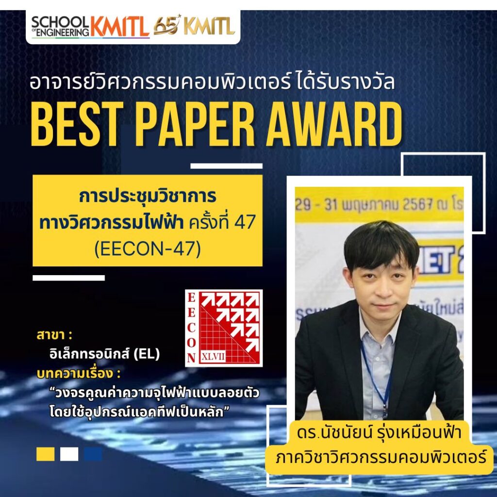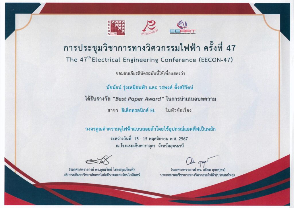 BestPaperAward จาก การประชุมวิชาการทางวิศวกรรมไฟฟ้า ครั้งที่ 47 EECON47