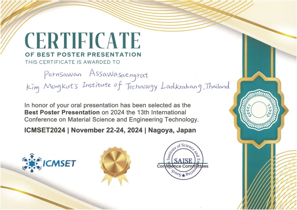 ในงานประชุมวิชาการระดับนานาชาติ 2024 the 13th International Conference on Material Science and Engineering Technology (ICMSET 2024)