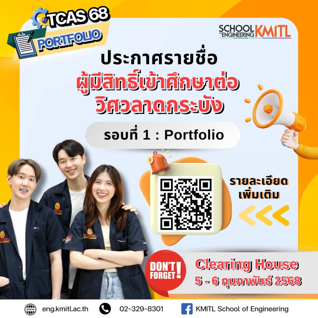 🌟 ประกาศรายชื่อผู้ผ่านการคัดเลือกและมีสิทธิ์ Clearing House แบบ Portfolio รอบที่ 1 คณะวิศวกรรมศาสตร์ ประจำปีการศึกษา 2568