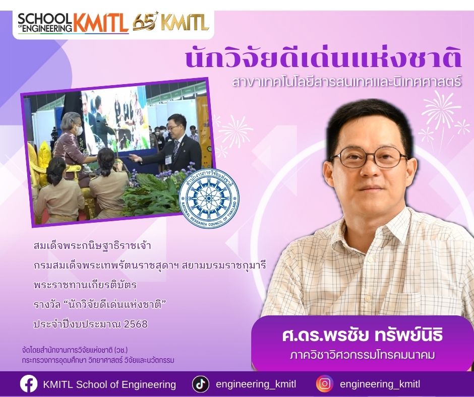 อาจารย์ #วิศวกรรมโทรคมนาคม #วิศวลาดกระบัง ได้รับรางวัล #นักวิจัยดีเด่นแห่งชาติ” ประจำปีงบประมาณ 2568 สาขาเทคโนโลยีสารสนเทศและนิเทศศาสตร์