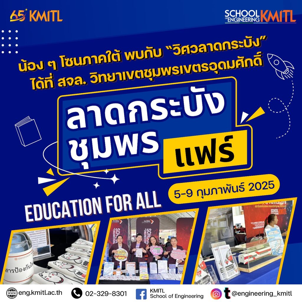 📢 พบกับ!! #วิศวลาดกระบัง ในงาน #ลาดกระบังชุมพรแฟร์2025 ในวันที่ 5 – 9 กุมภาพันธ์ 2568 ณ สจล. วิทยาเขตชุมพรเขตรอุดมศักดิ์จังหวัดชุมพร