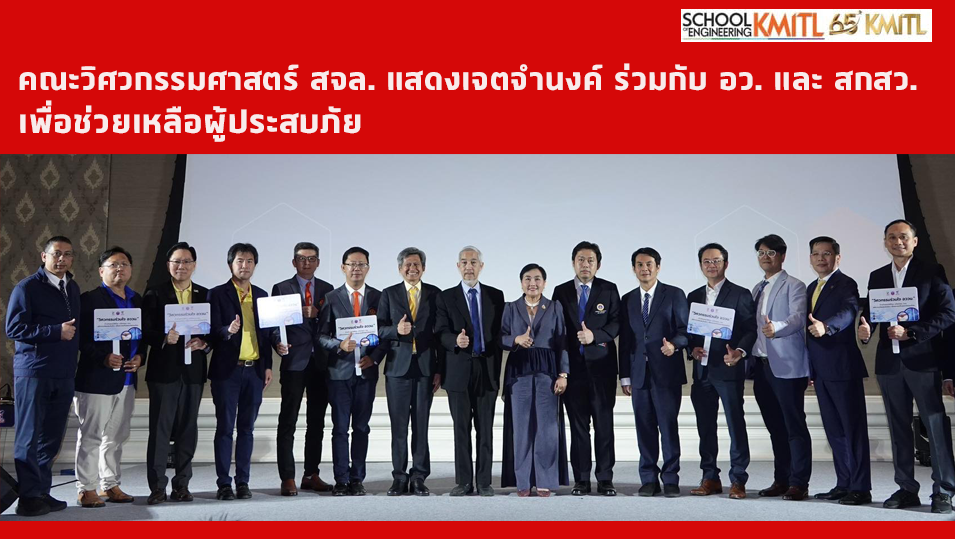 คณะวิศวกรรมศาสตร์ สจล. แสดงเจตจำนงค์ ร่วมกับ อว. และ สกสว. เพื่อช่วยเหลือผู้ประสบภัยและเสริมสร้างความเข้มแข็ง ในการจัดการภัยพิบัติอย่างยั่งยืน โดยร่วมสนับสนุนทั้งด้านองค์ความรู้เทคโนโลยีนวัตกรรม ตลอดจนการจัดส่งบุคลากรผู้เชี่ยวชาญในสาขาต่างๆ เช่น วิศวกรรมโครงสร้าง วิศวกรรมแผ่นดินไหว วิศวกรรมโยธา หุ่นยนต์และระบบสารสนเทศ เพื่อนำไปสู่การประเมิน วิเคราะห์และให้คำปรึกษาด้านวิศวกรรมในพื้นที่ประสบภัย รวมทั้งพร้อมสนับสนุนงานวิจัยเพื่อพัฒนาแนวทางและเทคโนโลยีที่เกี่ยวข้อง กับการป้องกันและบรรเทาภัยพิบัติในระยะยาว