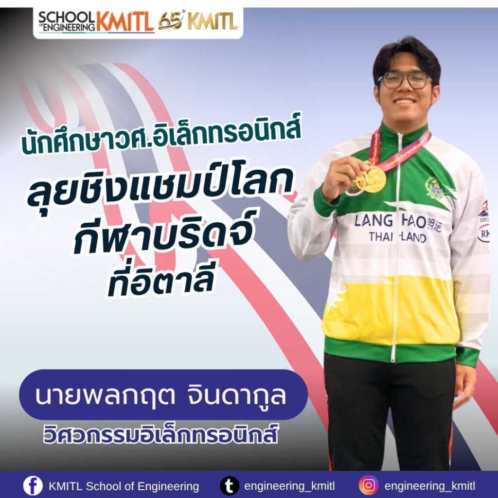 คณะวิศวกรรมศาสตร์ สจล. ขอแสดงความยินดีกับ นายพลกฤต จินดากูล นักศึกษาชั้นปีที่ 3 ภาควิชาวิศวกรรมอิเล็คทรอนิกส์ #สจล. ในโอกาสเป็น1ในตัวแทน ทีมนักกีฬาบริดจ์ไทย คว้าตั๋วลุยศึกไปร่วมการแข่งขันบริดจ์เยาวชนชิงแชมป์โลก 2025 ที่อิตาลี รวม 3 รุ่น ในเดือน กรกฎาคมนี้ โดยการแข่งขันครั้งนี้มีนักกีฬาจาก 9 ประเภท รวมกว่า 300 คน เข้าร่วมแข่งขัน