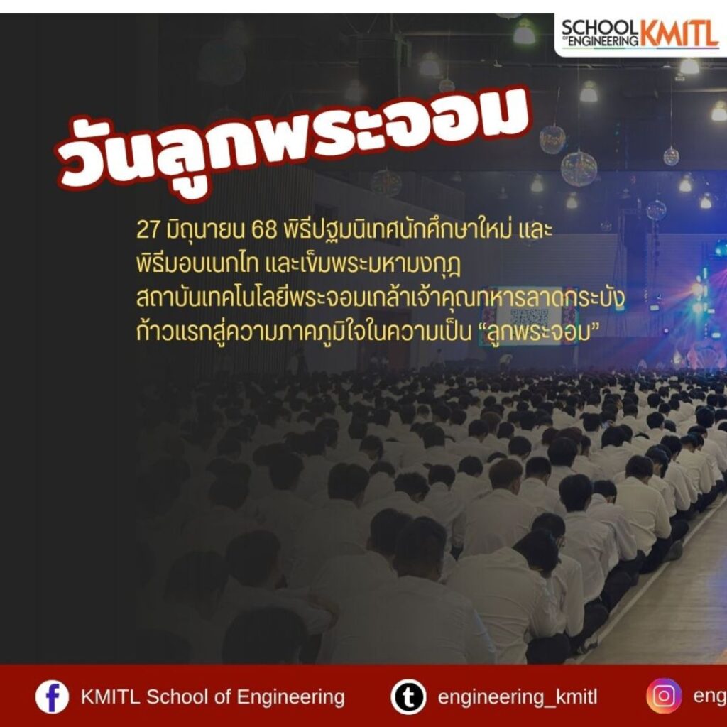 เมื่อวันที่ 27 มิถุนายน 2568 สถาบันเทคโนโลยีพระจอมเกล้าเจ้าคุณทหารลาดกระบัง จัดพิธีปฐมนิเทศนักศึกษาใหม่ สจล. และพิธีมอบเนกไทและเข็มพระมหามงกุฎ ประจำปีการศึกษา 2568