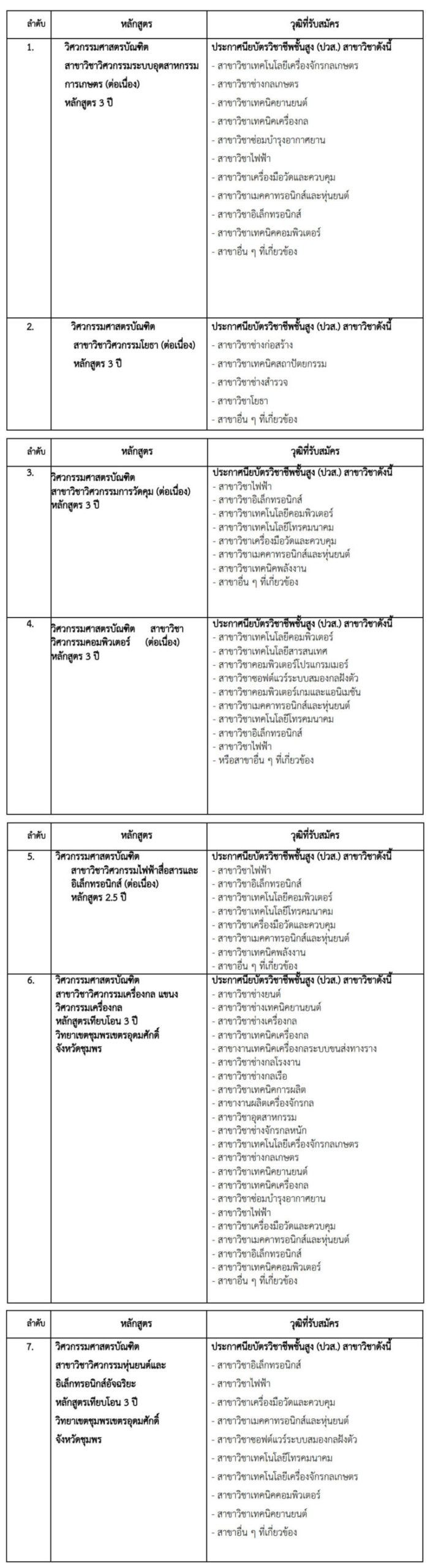 ▪︎ หลักสูตรวิศวกรรมศาสตรบัณฑิต (เทียบโอน) วิทยาเขตชุมพร