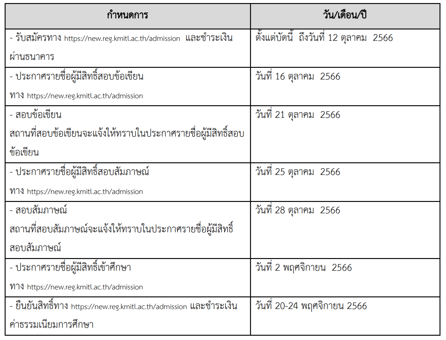 1. สมัครทางอินเทอร์เน็ตผ่าน https://new.reg.kmitl.ac.th/admission (สำนักทะเบียนและประมวลผล)